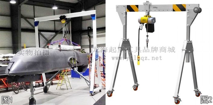 圖1、鋁合金龍門吊機:載荷1噸~10噸,重載型設計,鋁合金材質,自重輕,耐銹防腐蝕,
