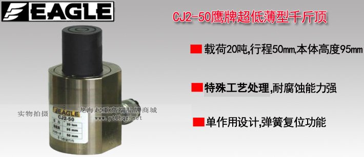 CJ2-50薄型液壓千斤頂,常與鷹牌APS鋁制手動液壓泵、HC1-2高壓軟管配套使用