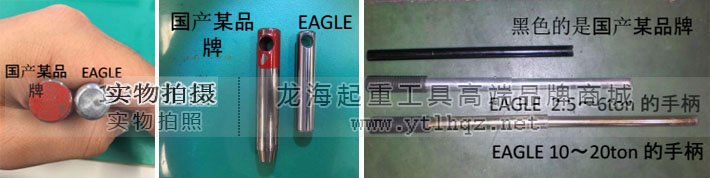 某國產品牌的操作手柄只是切割了一根鐵管,而鷹牌的是通過連接兩根鐵管制成,并且有橡膠柄。