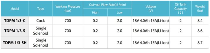 TDPM小型電動液壓泵簡介 韓國TECPOS品牌TDPM小型電動液壓泵工作壓力700 Bar,電壓18V(鋰離子),實物圖展示: